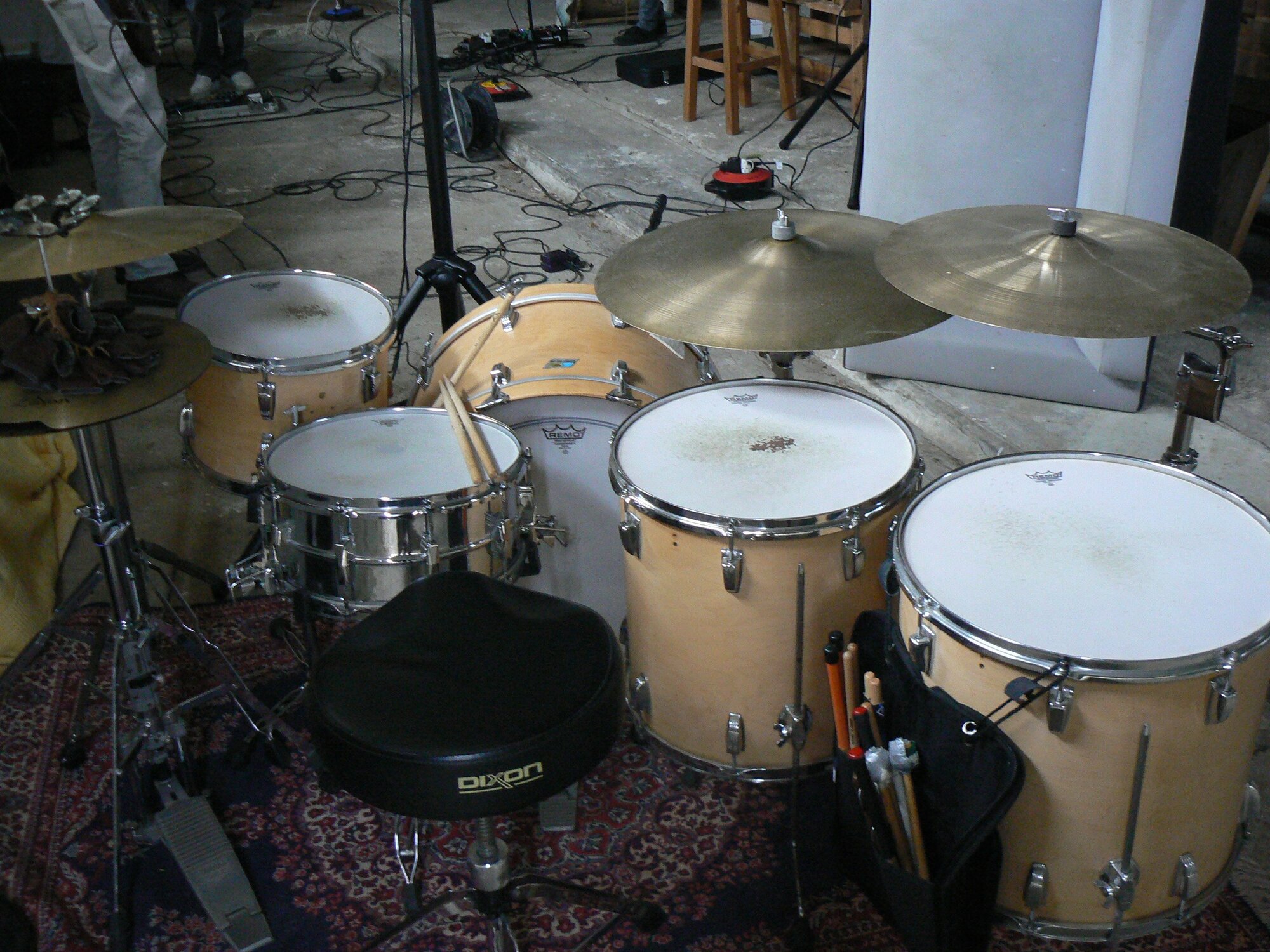 24/13/16/18 en 6 plis LM411, hh thin crash 15/marching 15, ride 24 avedis 70's, et deux ride avedis de 20 transformées en crash et appairées par Johan.