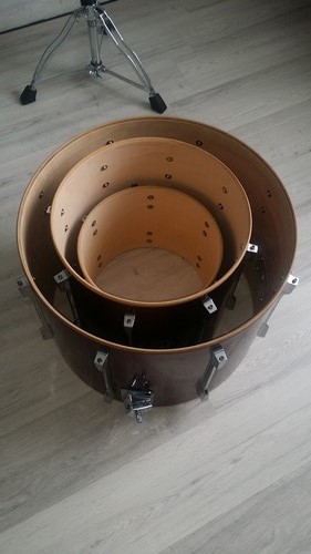 Ensuite je me suis demandé comment stocker les peaux. Après les avoir posées sur le tom 12 elles n'étaient pas stables donc pour éviter de les abîmer. J'ai récupérer une housse de cymbales non utilisée et j'ai tout mis dedans.