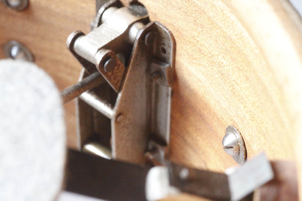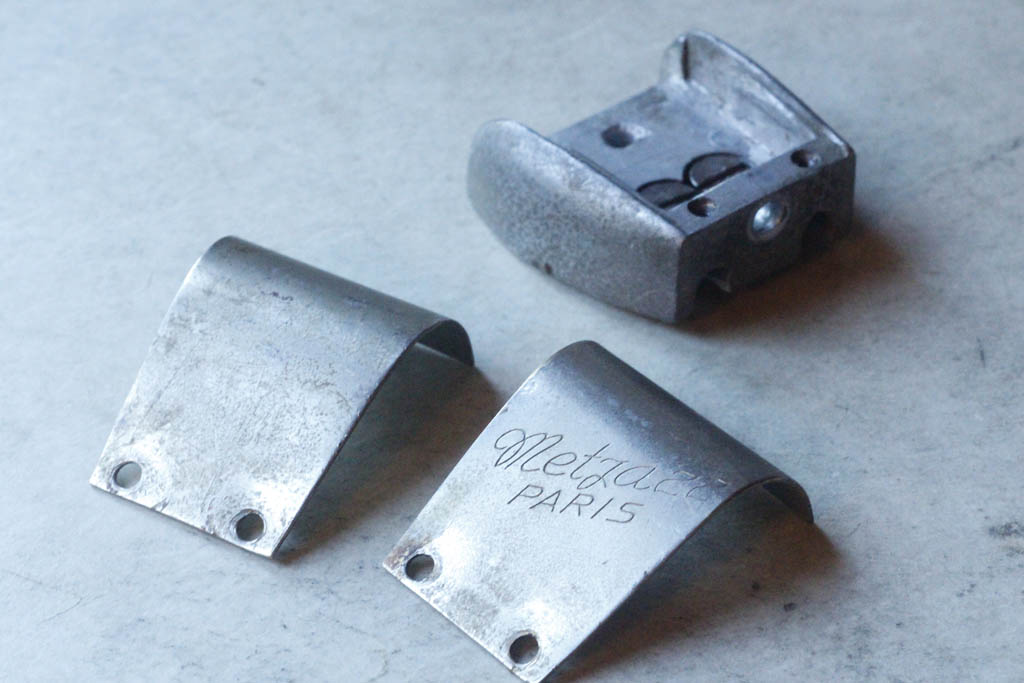 Les coquilles sont en bronze massif avec nickelage façon 1 micron qui pèle sous le doigt si on insiste ... j'ai parfois pensé que tout ça allait finir sous une polisseuse et puis ... finalement je crois que la kiffe comme ça ! La peau de veau est naze