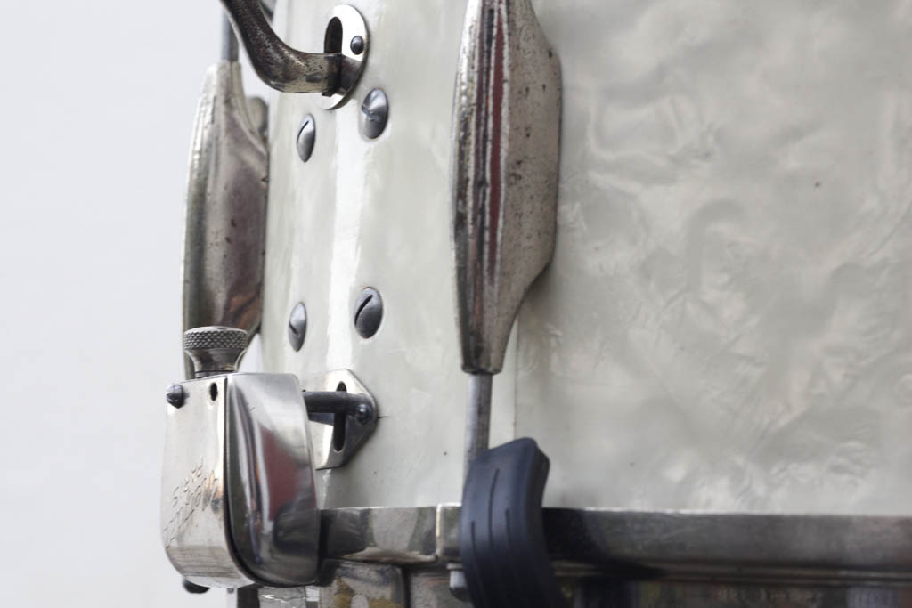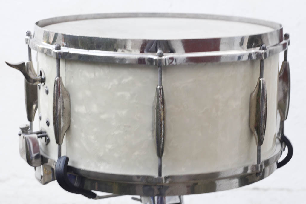 De l'eau a coulé sous les ponts et ayant d'autres chats à fouetter j'avais quelque peu délaissé la bête ( pour cause principale de manque de ... peaux). Mais voilà t'y pas que l'automne indien sur la côte basque aidant et la rencontre avec une autre 451 chaussée par mr Vintage en Remo ambassador calibre 14" (un lointain cousin de Ferrero ambassadeur lui aussi) me remirent en selle pour attaquer du Metjazz cette semaine résultat : ma 451 enfin peautée (lefima dessous ambassador dessus) j'ai pu achever sa "restauration" . Le chanfrein d'origine était ultra rond sur l'exterieur et pas vraiment sharp vers l'intérieur non plus j'ai dans un premier temps conservé son profil ayant en tête de repeauter en veau mort né , et d'emblée le son s'avère extrèmement boisé avec un beau bas medium bien charpenté et des harmoniques très contrôlées. Le timbre (Pearl made in japan ) se laisse facilement régler grâce au système Metjazz de toute beauté permettant de parfaire l'angle et l'azimut du timbre avec une grande précision, de fait il peut se détendre un max sans buzz ou frisottis intempestifs ... c'est la grande classe au point que maintenant la furieuse envie de pousser jusqu'à nickeler les coquilles ( et pourquoi pas les cercles me démange un peu ... c'est parmi l'une des plus belles sonorités de mon ratelier elle mérite bien ça !