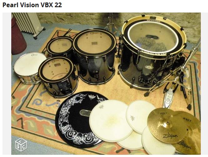 Sinon il y a aussi une pearl Vision VBX pour 650 € à Lavoute sur loire (43800) quasi complète. Il suffit de la compléter avec des pieds de cymbales, un pied de caisse claire et une grosse caisse + éventuellement d'autre cymbales que celles fournies.
