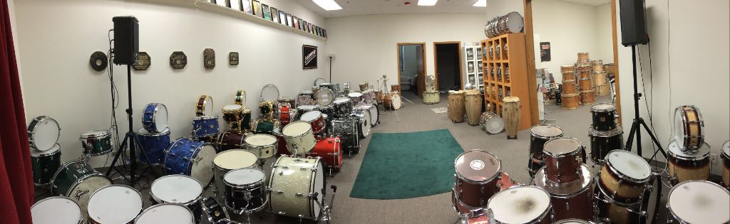- Une pièce avec les kits et caisses claires, vintage et récents, dont beaucoup de caisse claires Fibes.