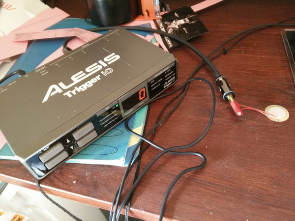 Qui dit VST dit midi, donc il faut un bazar pour brancher les triggers/pads. Cherchant à avoir une petite dizaine de pads/cymbales, le Trigger IO d'Alesis m'a semblé être pas mal, et très abordable d'occasion. En splittant 2 ou 3 entrées je caserai tout le monde.