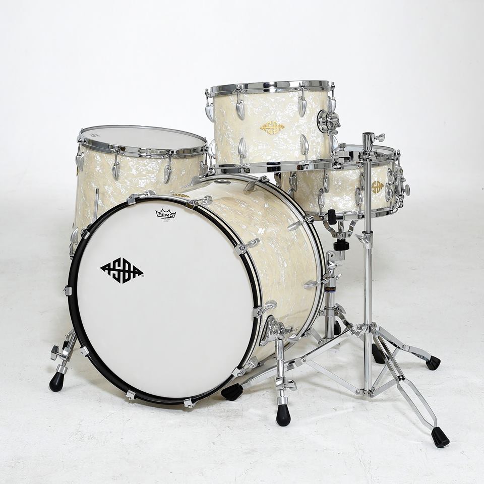 Matos : Premier Signia Coral White 10 fûts. Cymbales Sabian / Ufip