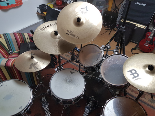 je le redis, mais chouette batterie, et les cymbales sont sympas. D'ailleurs, la ride Meinl sur la droite, c'est une byzance?