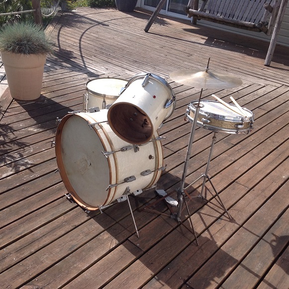 Je cherche actuellement la marque et l'époque de cette batterie sur laquelle j'ai fait mes premiers rythmes. Je sais simplement que la caisse claire est une John Grey & Sons Broadway, mais il s'agit probablement d'une pièce rapportée.