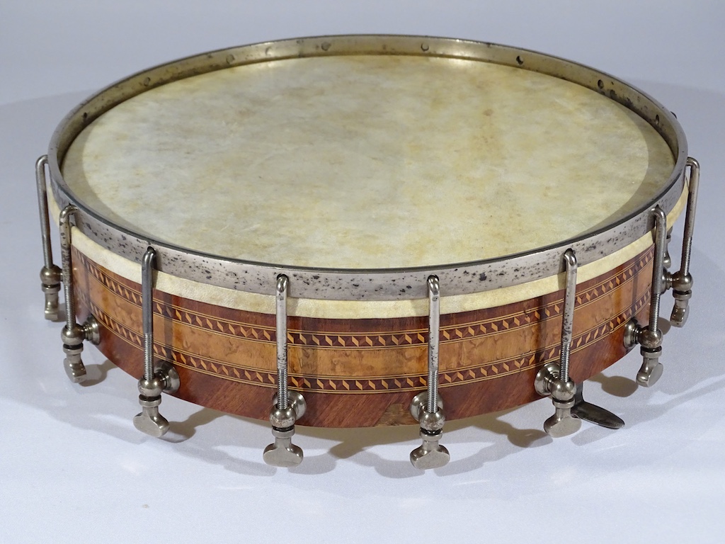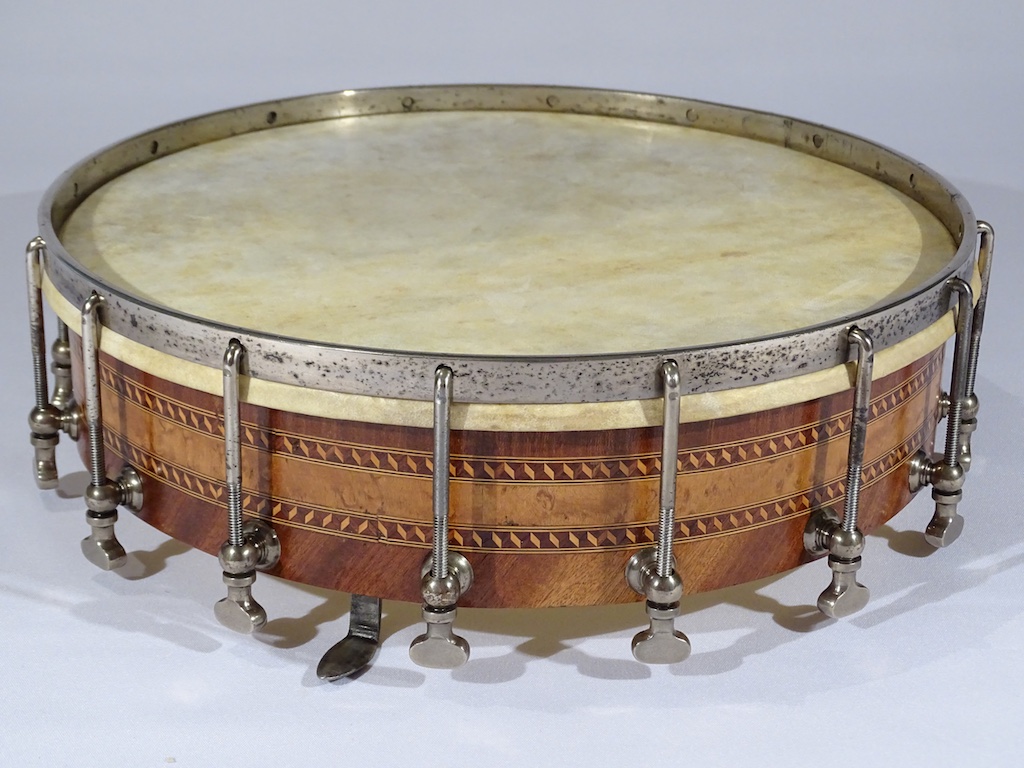 Dans la série "raretée", elle se pose là !! Un seul catalogue d'époque proposait 4 modèles de SIMPLEX, et après avoir vérifié quelques dizaines de clichés d'orchestres des années 20, seuls 2 ou 3 orchestres posaient avec ce modèle de caisse claire...