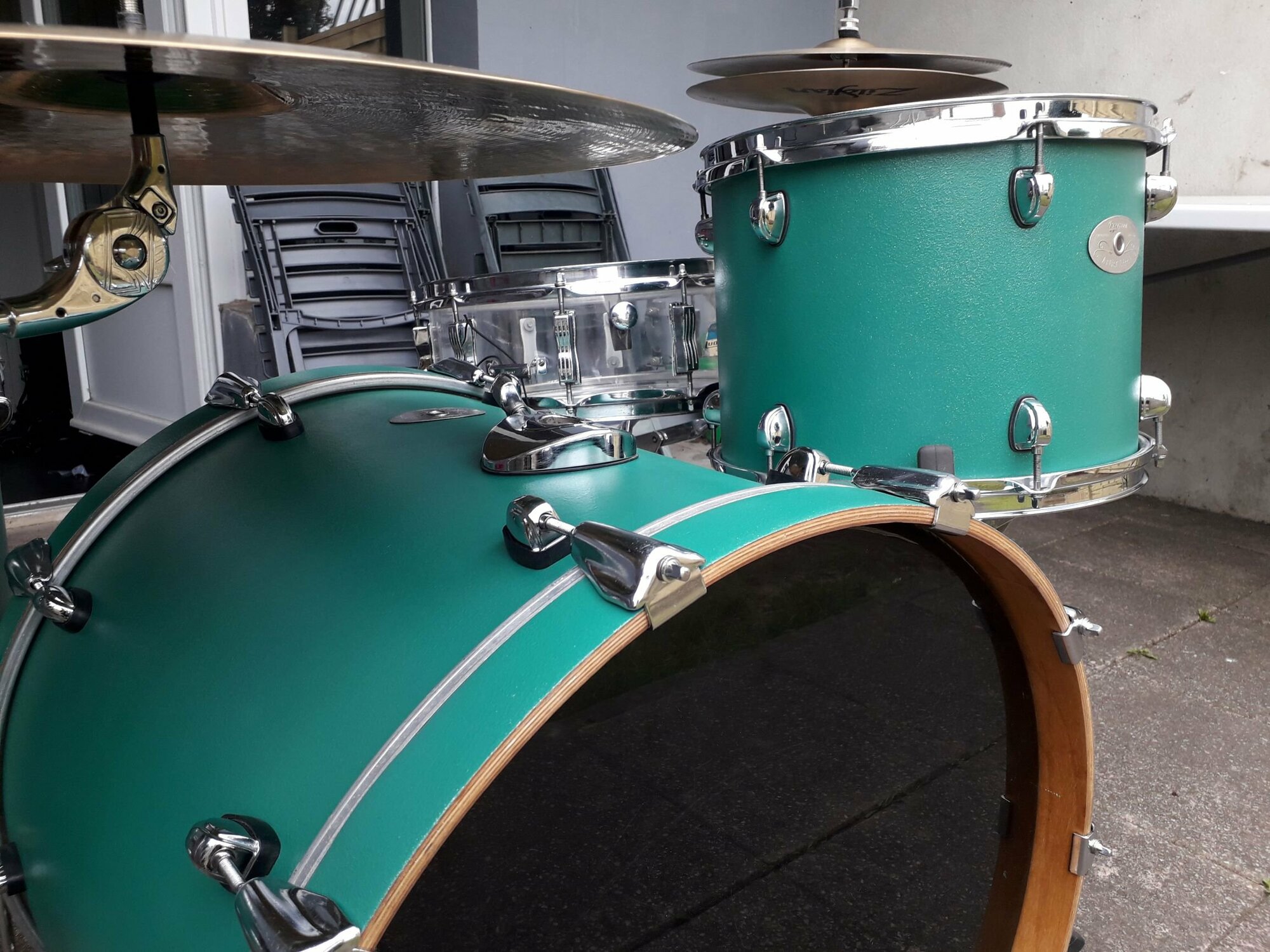 J'ai dégommé la peinture blanche sur les cercles gc qui était affreuse, je suis un peu plus partagé sur la peinture noire...abîmée sur la GC mais pas si mal sur les toms...