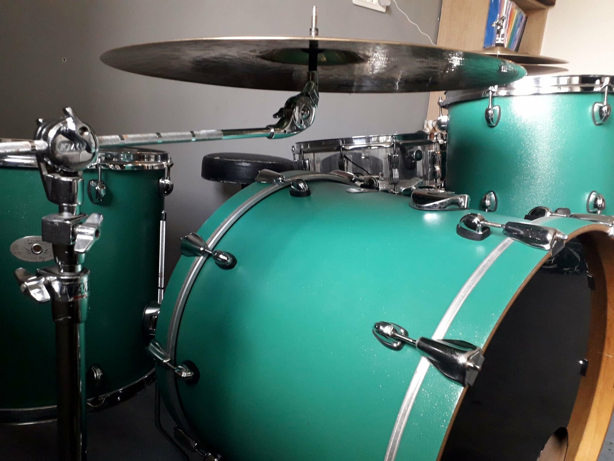 Une bien belle affaire... tu as déjà fait pas mal de boulot dessus et je trouve qu'elle a plutôt bon genre habillée ainsi en Zildjian !