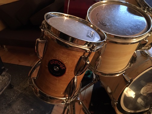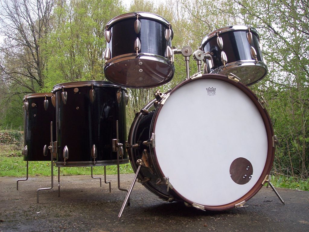 ébé si, Capelle Cirichelli, aka Sonic était sous-traitant de la branche "batteries" de l'anglais Orange, au début des années 70. il fabriquait en quatre plis d'acajou Makoré/aulne, de très beaux kits qui pouvaient ètre très chers et couverts d'or 24 carats. les toms basse sur la photo sont un 16" et un 19": quelle bonne idée !