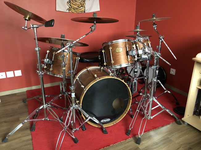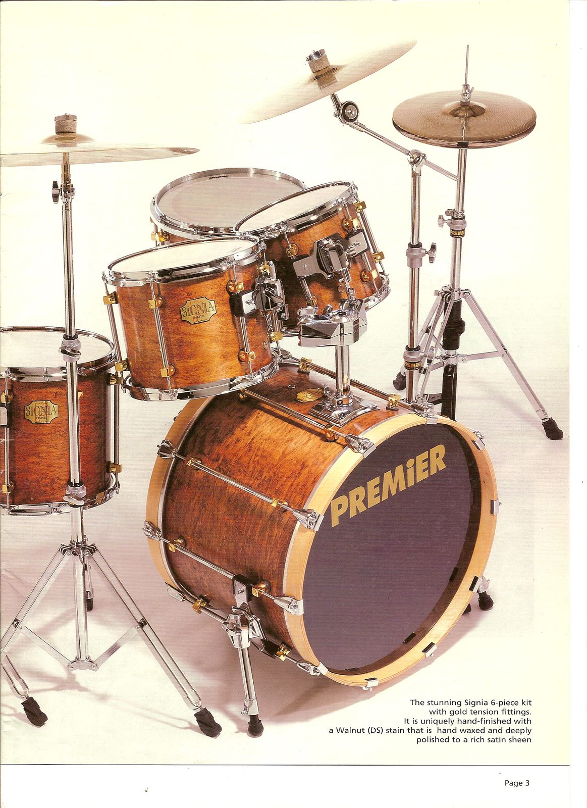 J'ai tout vendu en 2012 et m'y suis remis petit à petit en 2016. J'ai trouvé une Sonor Sonic+ pas trop chère, et franchement sympa niveau son, mais mon envie était un jour de racheter une Premier Signia, soit la Maple (classique avec renforts de chanfreins et fûts fins) soit le modèle Marquis qui est vraiment difficile à trouver chez nous.