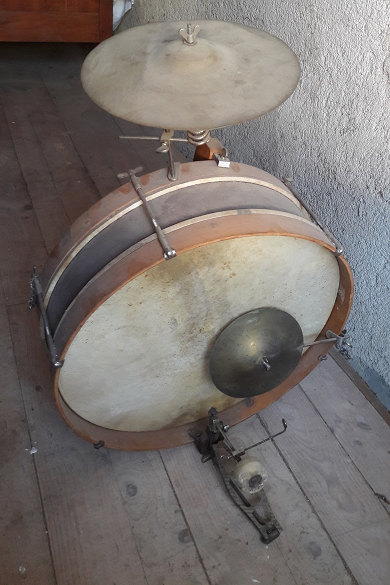Très jolie chose, dis donc ! La poussière a l'air aussi ancienne que la batterie le jazz band lui-même. Vas-y doucement en démontant tout ça, surtout pour les peaux montées sur leurs cerclages.