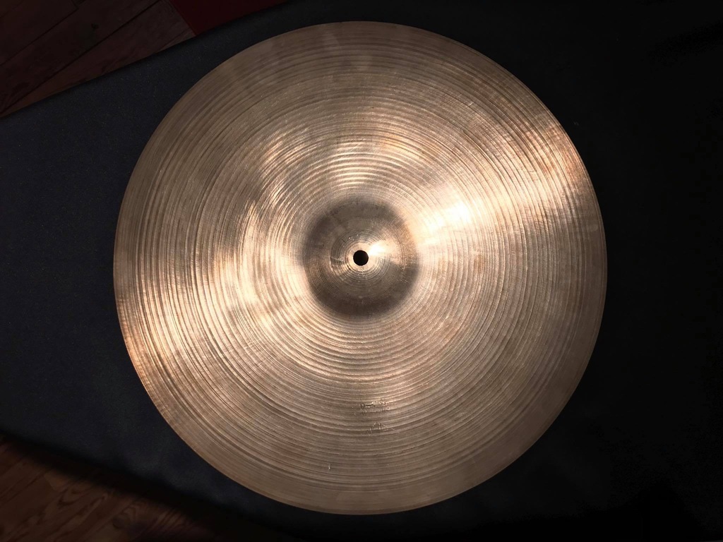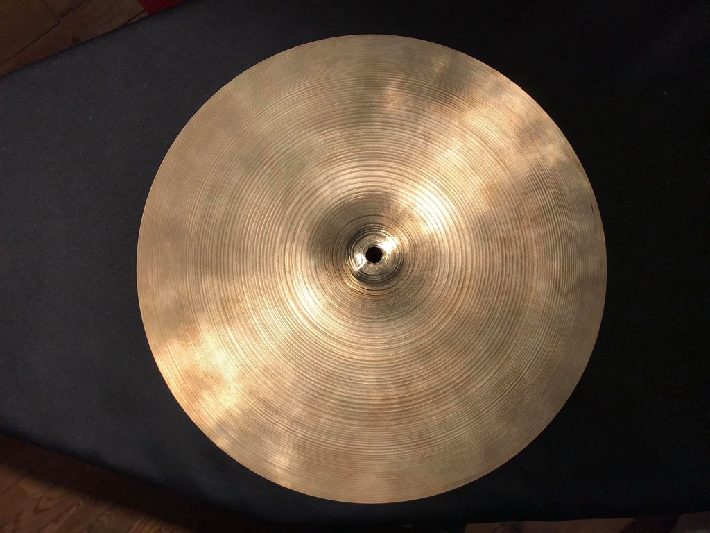 Une Bounce Ride Ufip en 16’’. Série Rythme qui est sans doute l’ancienne appellation de la Ritmo. Stamp des 50-60’s. Cymbale en super état pour son âge.