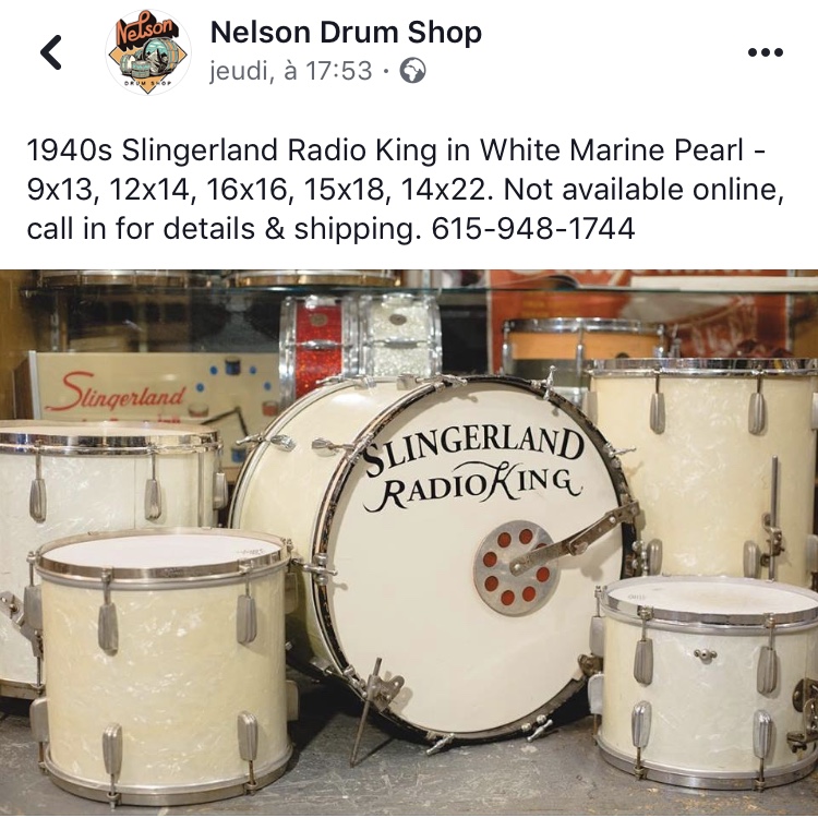 Me faudrait un tom basse de 18 a pas trop cher. Si. Dans un monde parfait, ce serait un Radio King White Marine Pearl, ahem... Si ! ça existe !, j’en ai vu un en photo... une fois.