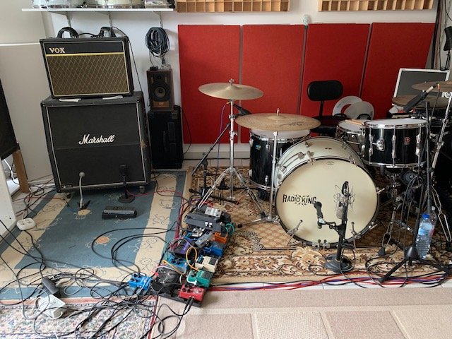 Là que t’es dedans, tu noteras qu’on s’enregistre ensemble, avec les amplis, dans 30 m2. Ça rend les micros d’ambiance sans grand intérêt, leur placement est à revoir. En revanche tout passe (bien) dans une paire de rubans en ORTF. On a eu des 214 à leur place et c’était tout à fait désagréable par exemple.