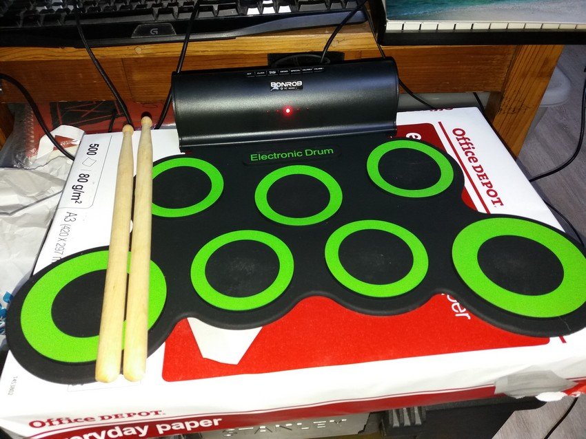 Bonjour, sans savoir jouer, et juste pour faire des petit son de batterie electronique pour enregistrer sur mon PC, et question de prix, j'ai commander une "BONROB Batterie Electronique Drum Set, Roll Up percussions Midi Drum Kit"