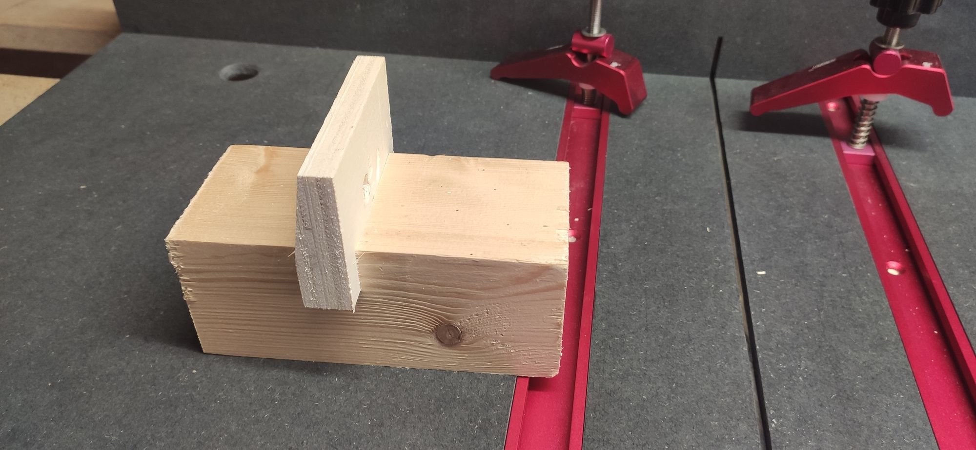 Il m'a énormément servi, l'angle était bien droit, mais il a fait son temps. Pour faire des coupes répétées je devais clamper des bouts de bois avec des serre-joints pour servir de butées. Pas pratique, pas très sécurisant.