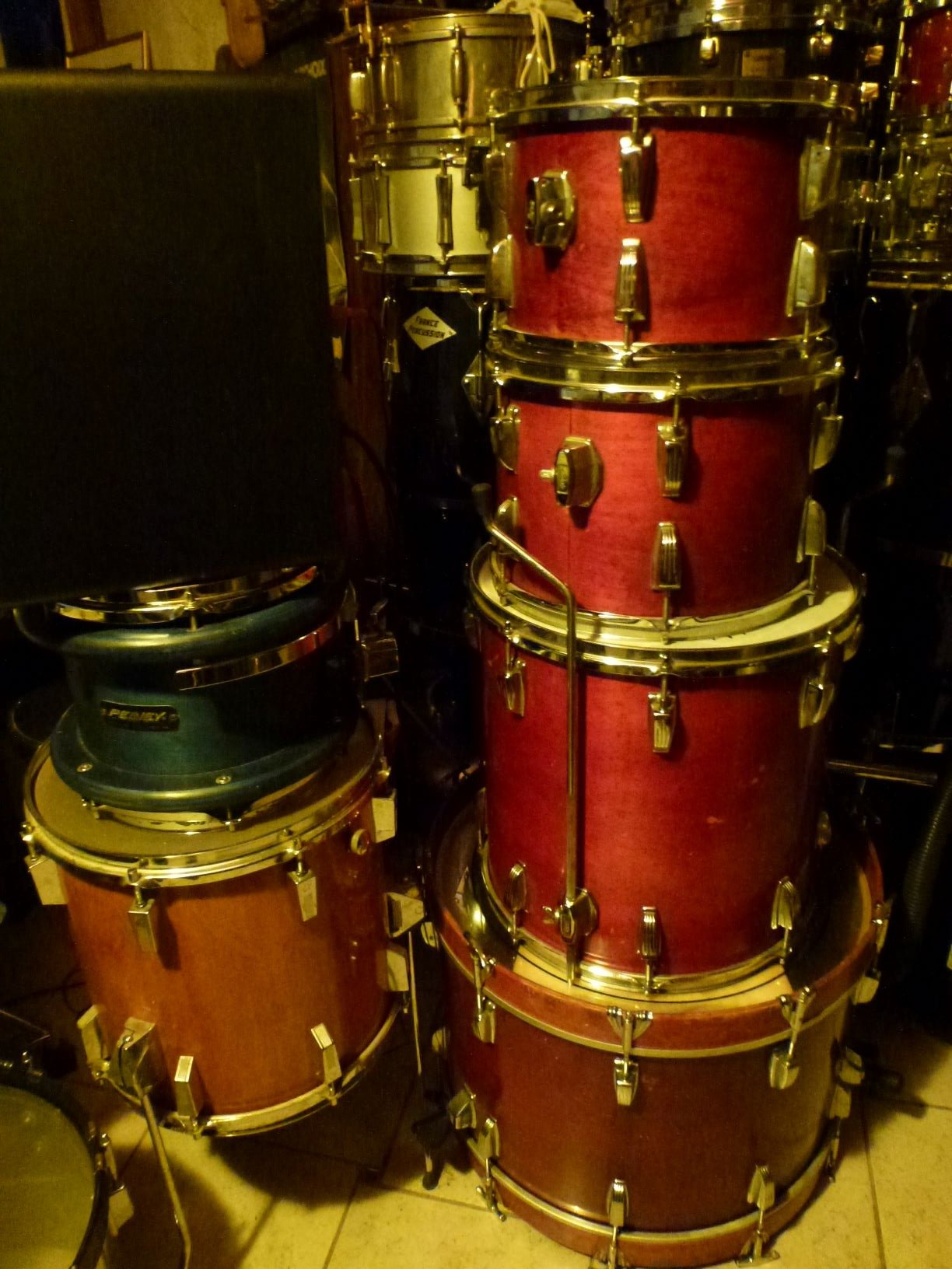 là où ça craint du boudin c'est qu'en face, chez les bridés, les cherry, super maple et Mahogany de Tama, les ruby de Mapex Orion, les tobacco fade de Trak et les Sequoia red de Pearl ne bougent pas d'un poil de cul. même Premier sait se tenir, c'est dire.
