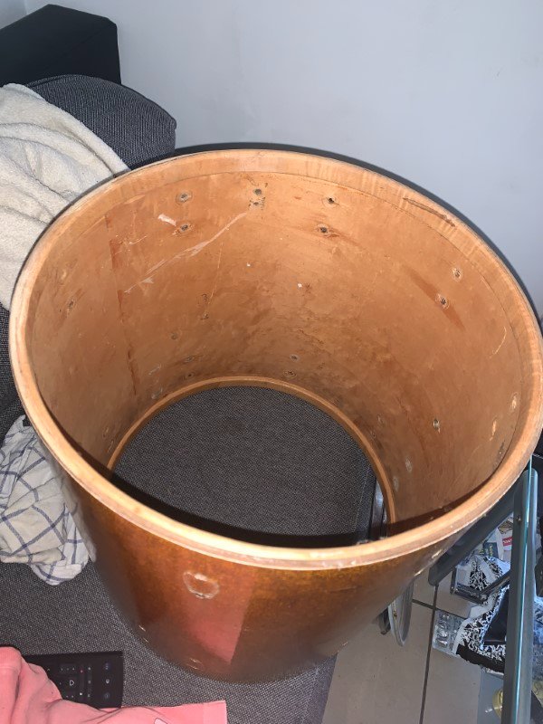 La grande question est le rhodo... Faut il la garder dans son jus ? La grosse et le 13 ont pris un gros coup de chaud contre le 16 qui est bien préservé, avez-vous eu d'autre cas ? De plus, le rhodo s'est bourlétisé au niveau des coquilles de la grosse caisse... Un gold sparkles neuf ne ferait il pas le plus grand bien ?