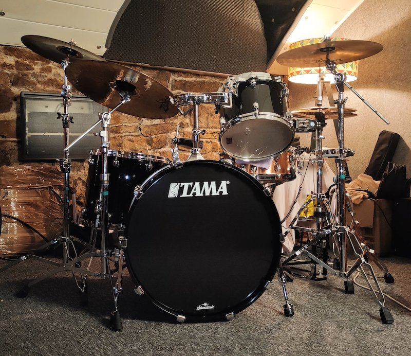 Après moultes tergiversations je me suis résolu à vendre ma Gretsch Renown aux dimensions généreuses (24-12-13-16) pour revenir sur un kit que j'avais possédé mais revendu pour la Gretsch avec laquelle j'avais hésité à l' époque, une Tama Starclassic Walnut/Birch.
