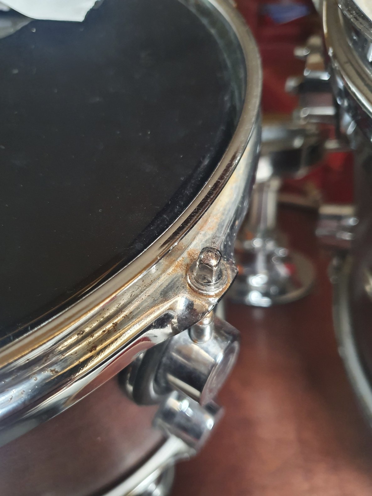 Si le vert de gris est sur les cymbales, effectivement tu peux le frotter doucement, mais attention à ne pas abimer plus le vernis de la cymbale. Moi, je le laisse tel quel, j'ai une trace sur une crash qui n'a pas bougé depuis quelques années...