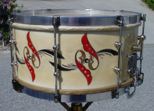 "-Tu évoques un décor rouge/noir/doré : le doré se voit sur tes photos, mais les autres couleurs sont visibles sur ton fût ou c'est une supposition basée sur la CC de M. Curotto ? car ce n'est pas le même décor